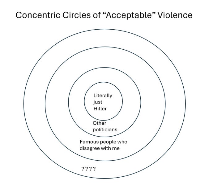 These calls are important, and I share them. But they also happen every time there's an episode of political violence. In the wake of the attempted assassination of then-candidate Trump, every Democratic politician used their bully pulpit to condemn political violence. Every time there's an act of political violence, every bridge-building organization steps into the breach to encourage us all to be more civil to each other.